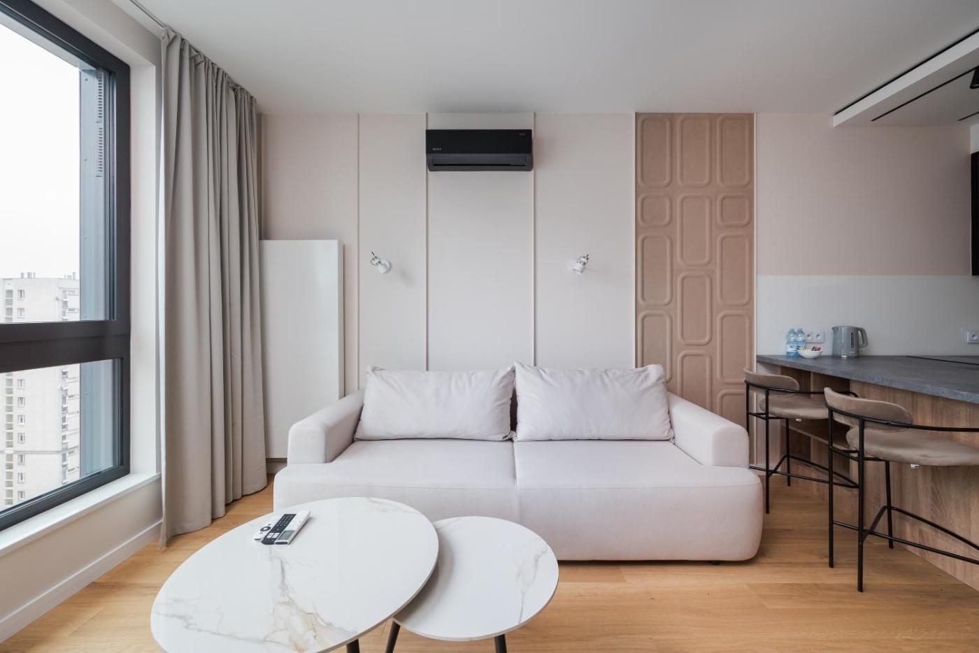Apartament z 1 sypialnią. Featuring a private entrance, this air-conditioned apartment comprises 1 living room, 1 separate bedroom and 1 bathroom with a shower and a hairdryer. The well-equipped kitchenette features a stovetop, a refrigerator, a dishwasher and kitchenware. Boasting a balcony with city views, this apartment also provides a washing machine and a flat-screen TV. The unit offers 2 beds. Apartament - 4 osobowy. Powierzchnia pokoju ok.: 31 mkw.